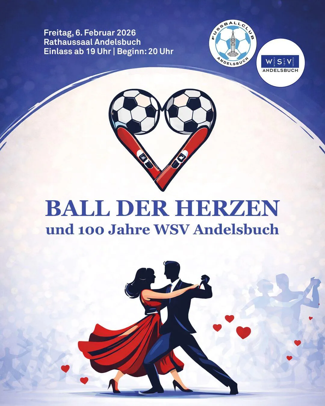 Zwei Andelsbucher Vereine. Ein gemeinsamer Ball.Der FC Andelsbuch und der WSV Andelsbuch gehen neue Wege und organisieren den Ball der Herzen erstmals gemeinsam. Was früher vom FC Andelsbuch allein auf